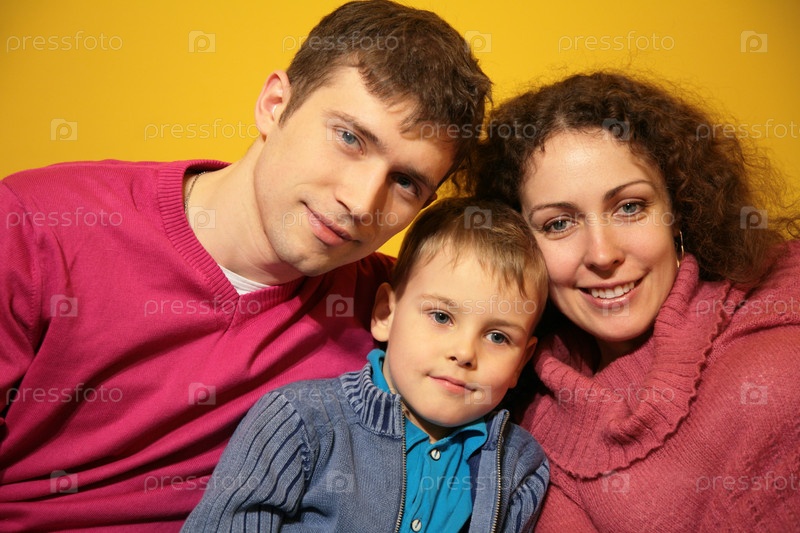 Портрет семьи на желтом фоне