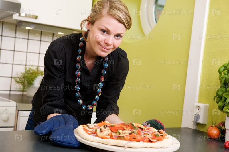 Женщина с свежей пиццей