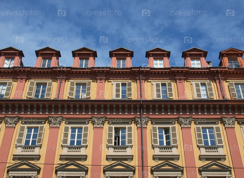 Неоклассический фасада здания на площади Статуто, Турин, Италия
