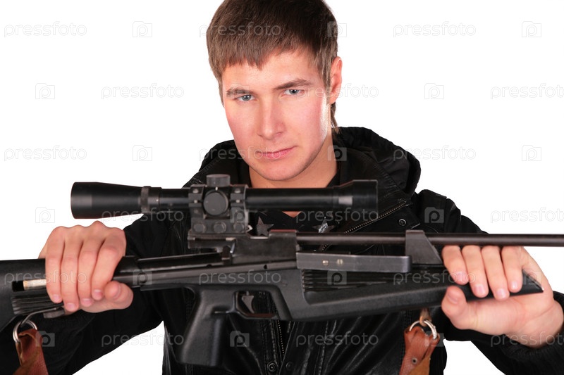 Молодой человек со снайперской винтовкой