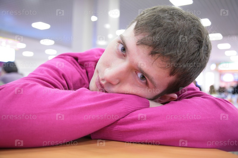 Грустный молодой человек в кафе