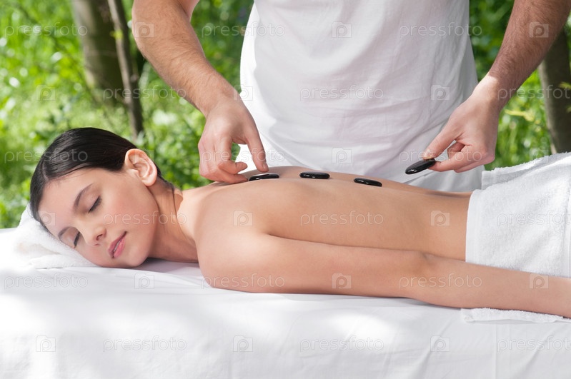 Привлекательная женщина на процедуре с горячими камнями