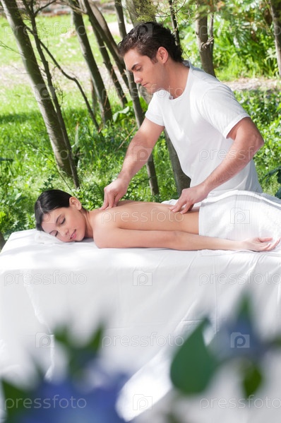Красивая девушка получает массаж