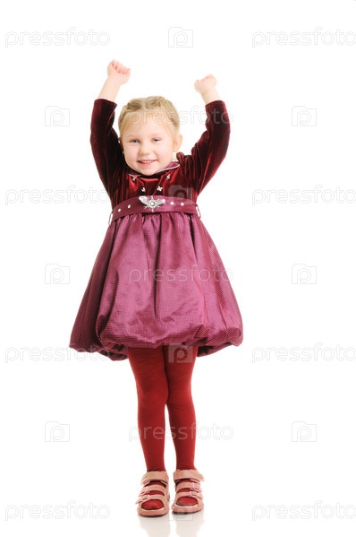 Маленькая девочка танцует на белом фоне