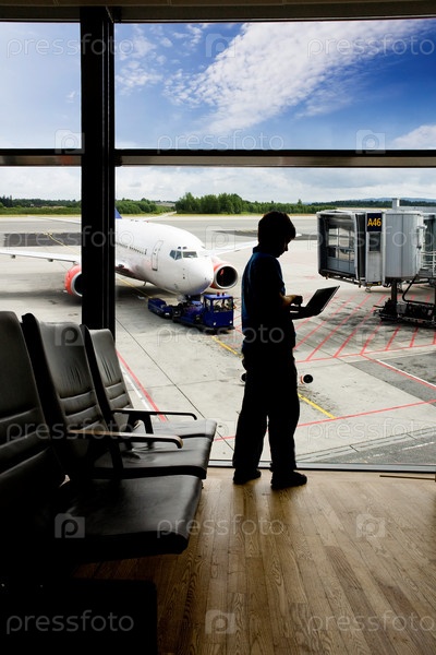 Человек с компьютером в аэропорту