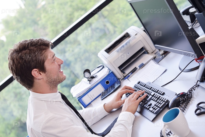 Счастливый молодой бизнесмен в офисе