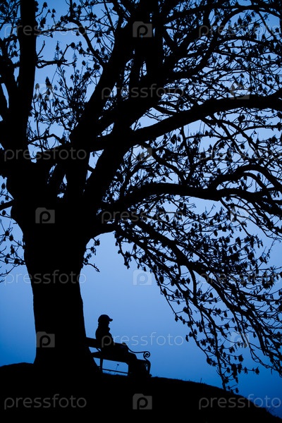 Человек в сумерках на скамейке
