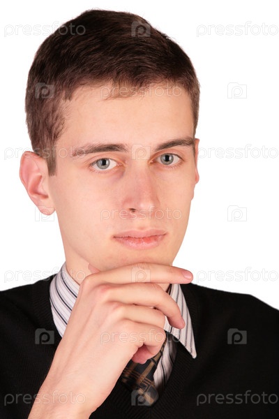 Заинтересованный молодой человек, на белом фоне
