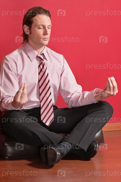 Бизнесмен, занимающияся йогой