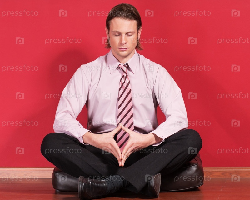 Бизнесмен, занимающияся йогой