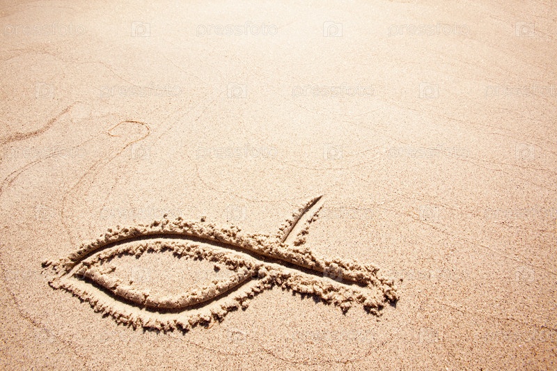 Символ рыбы на песке