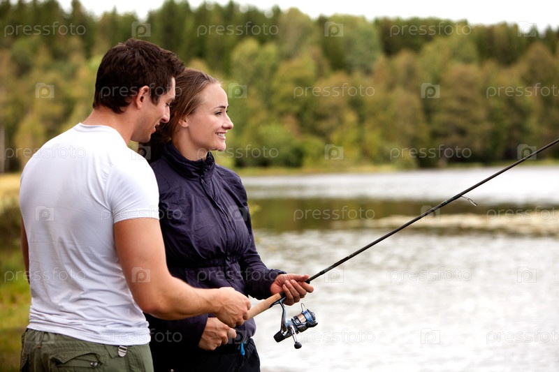 Мужчина и женщина рыбачат