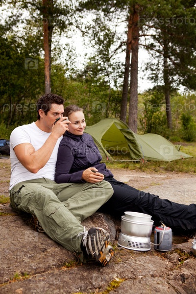 Молодая пара на отдыхе в лесу