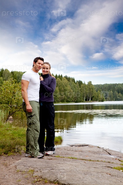 Молодая пара на отдыхе в лесу