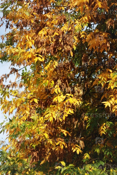 Дерево с желтыми листьями и семенами