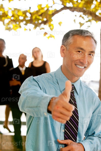 Деловой человек с поднятым большим пальцем