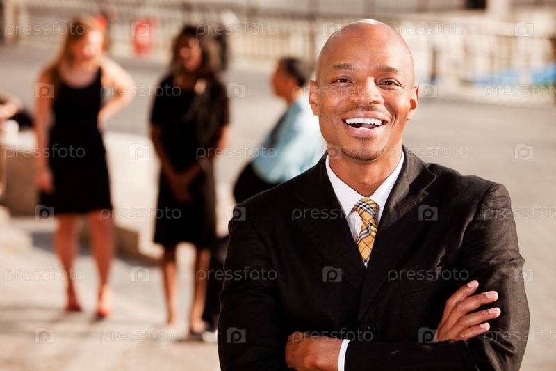 Портрет улыбающегося темнокожего бизнесмена на открытом воздухе