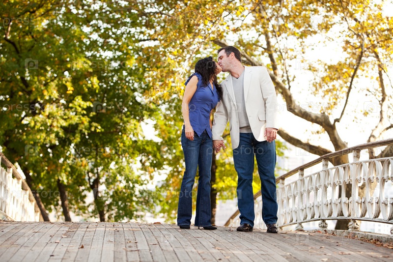 Молодая влюбленная пара в парке
