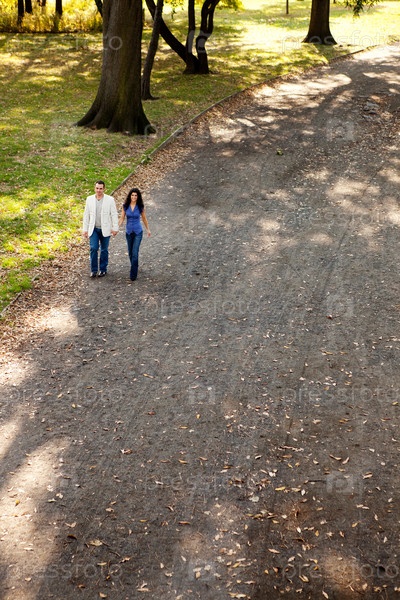Молодая влюбленная пара в парке