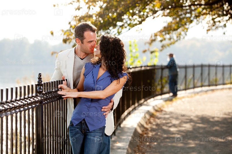 Молодая влюбленная пара в парке