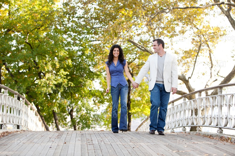 Молодая влюбленная пара в парке