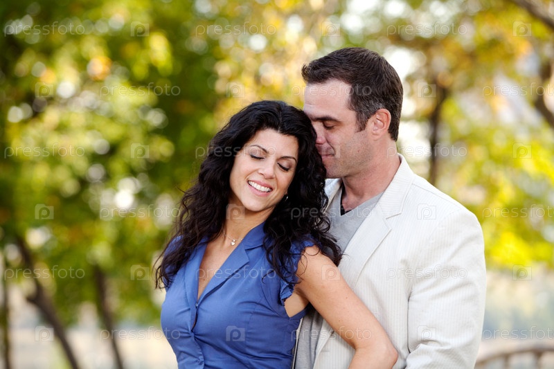 Молодая влюбленная пара в парке