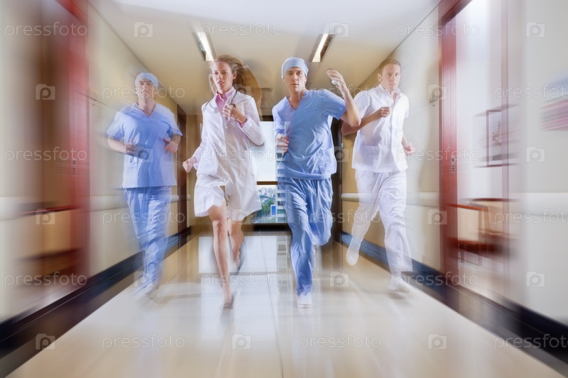 Медицинский персонал в коридоре больницы