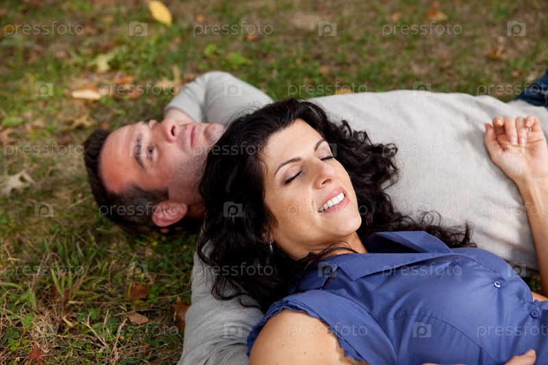 Мечтающая пара на траве