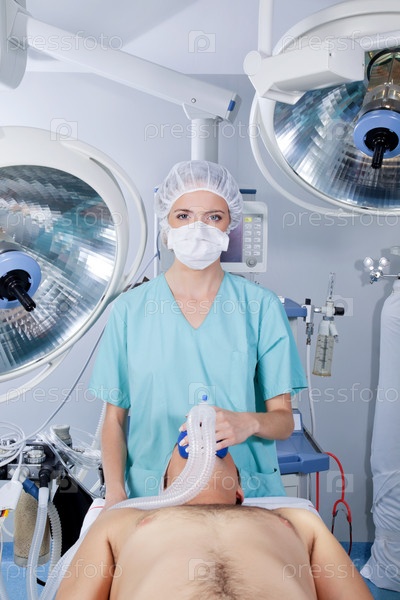 Врач применяет газовую маску