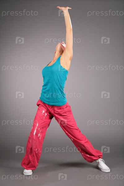 Девушка в спортивной одежде танцует современные танцы