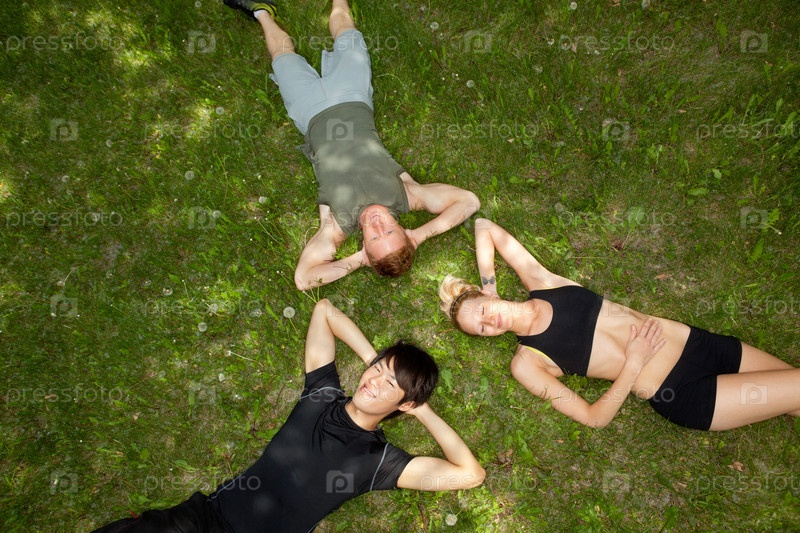Друзья отдыхают, лежа на земле