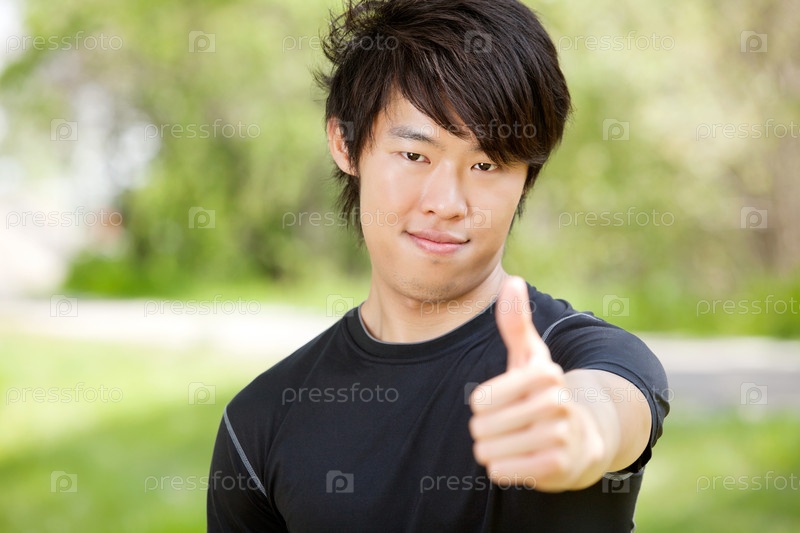 Портрет мужчины с поднятым большим пальцем