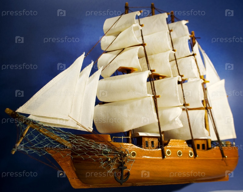 Парусное судно на синем фоне