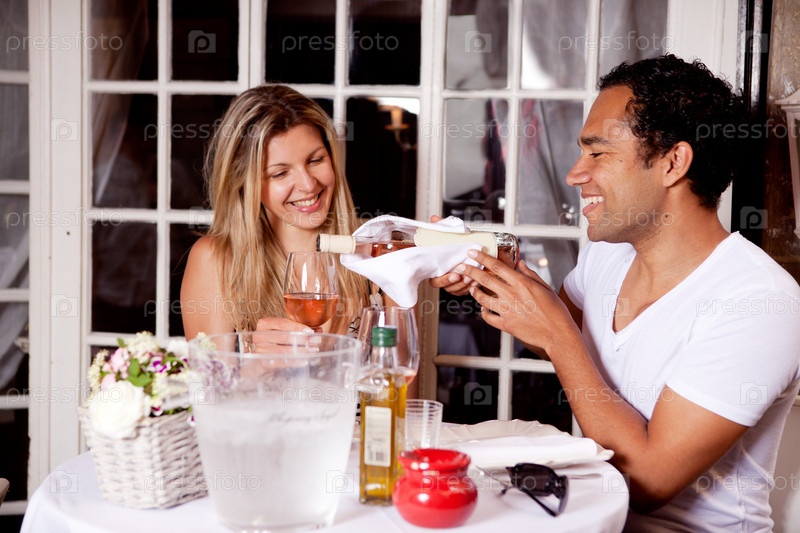 Европейская пара в кафе на свежем воздухе
