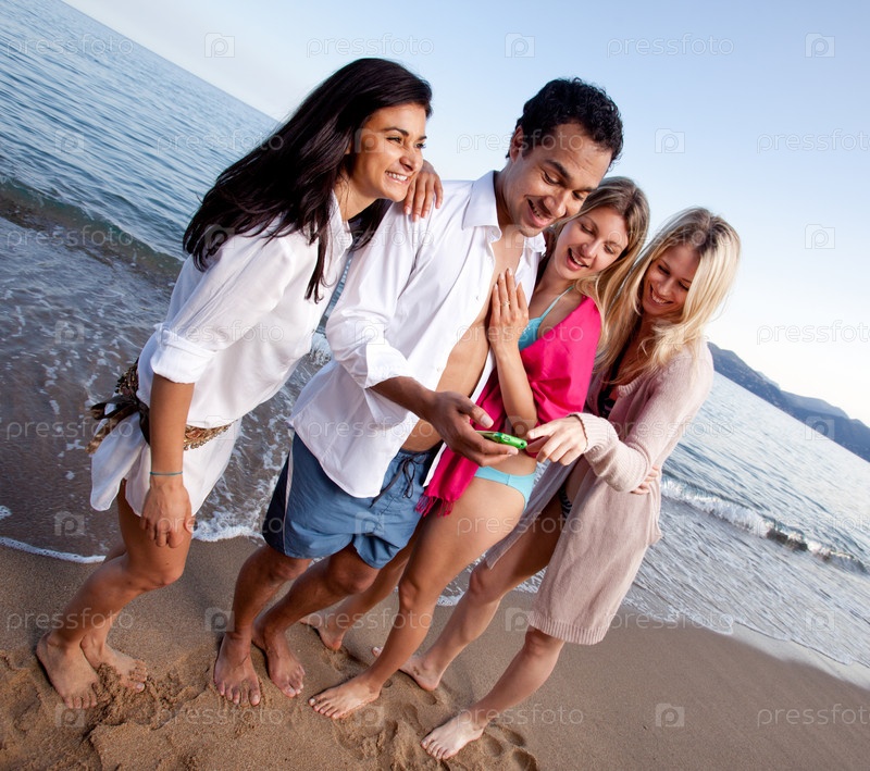 Друзья, смеющиеся, глядя на сотовый телефон