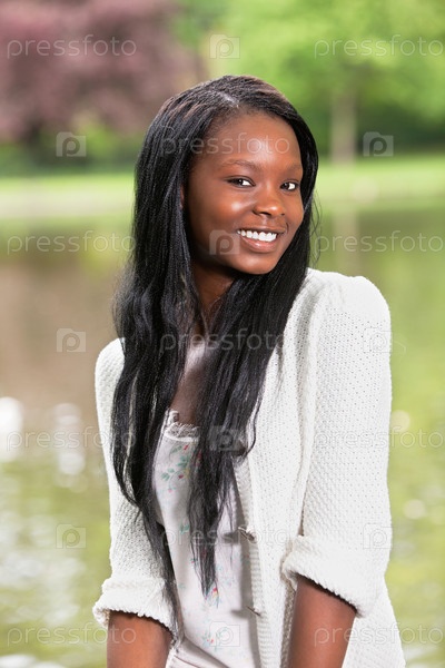 Молодая улыбающаяся женщина на размытом фоне