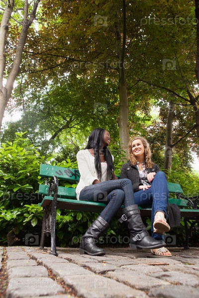 Расслабленные подруги болтают в парке