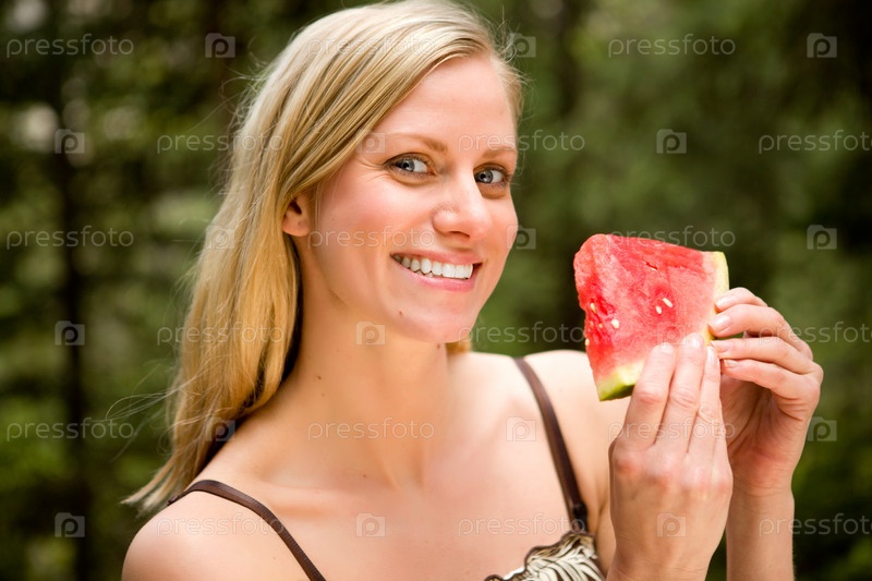Улыбающаяся женщина с арбузом