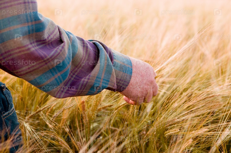 Фермер смотрит на пшеницу