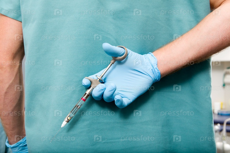 Стоматолог с большой иглой