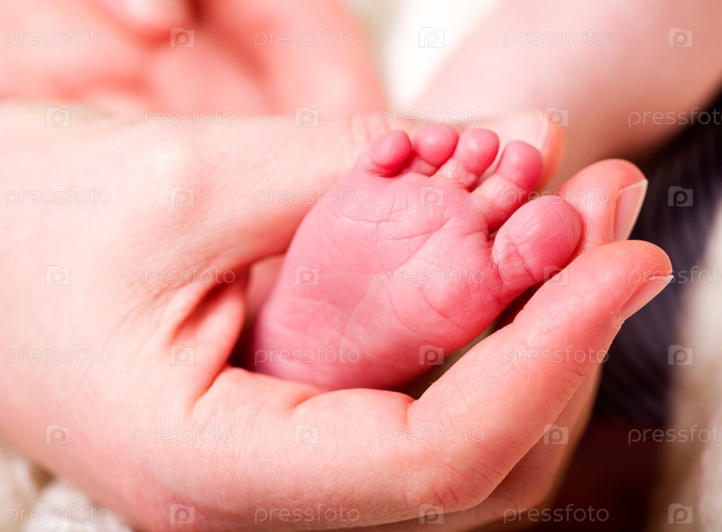 Ножка младенца в руке