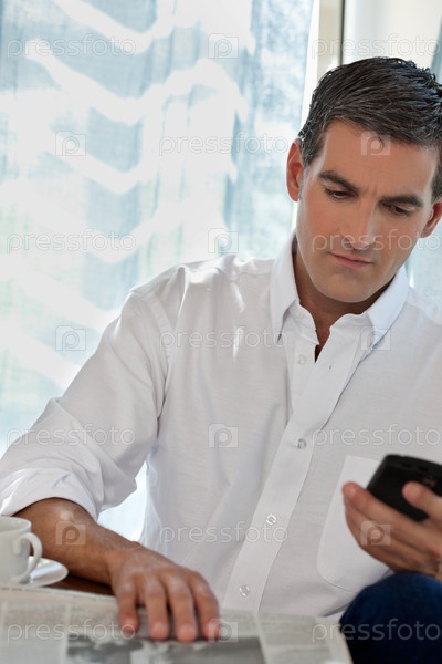 Мужчина использует сотовый телефон