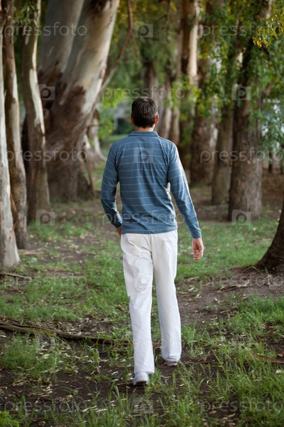 Мужчина идет по лесу