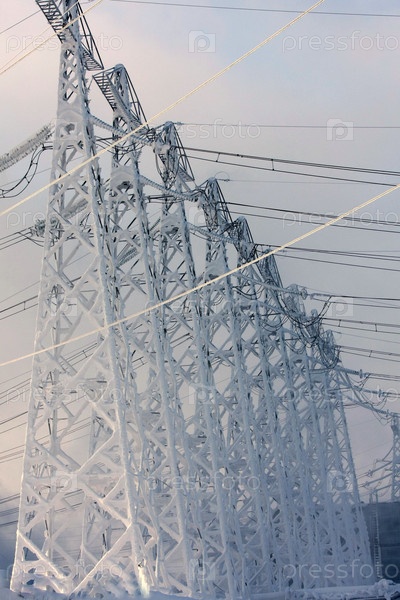 Ряд высоковольтных вышек