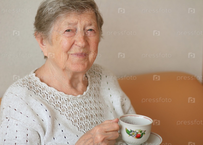 Пожилая женщина с чашкой чая