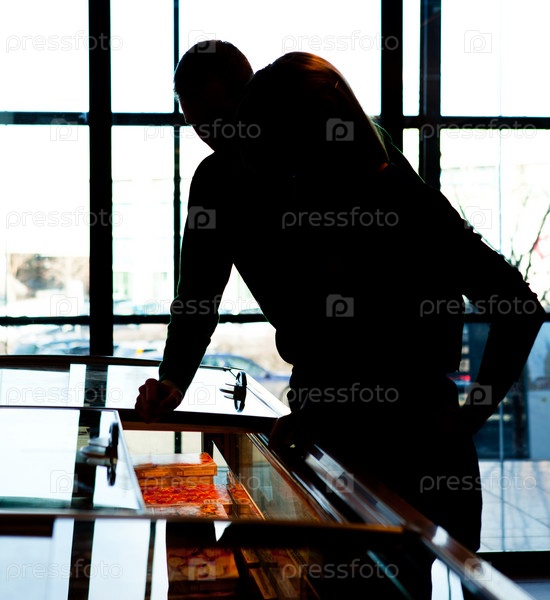 Силуэт супружеской пары в супермаркете