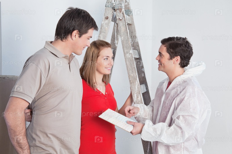 Маляр показывает образец цвета