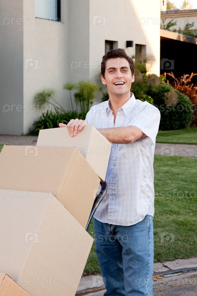 Молодой человек несет коробки