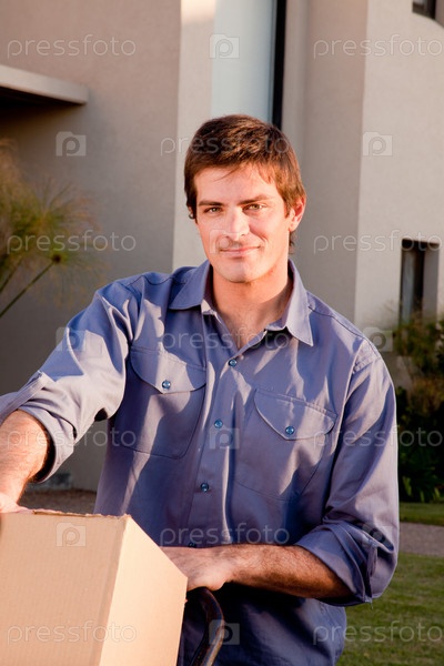 Молодой мужчина несет коробку
