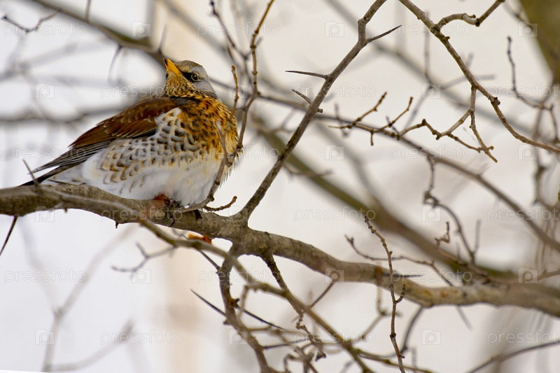 Дрозд сидит на ветке